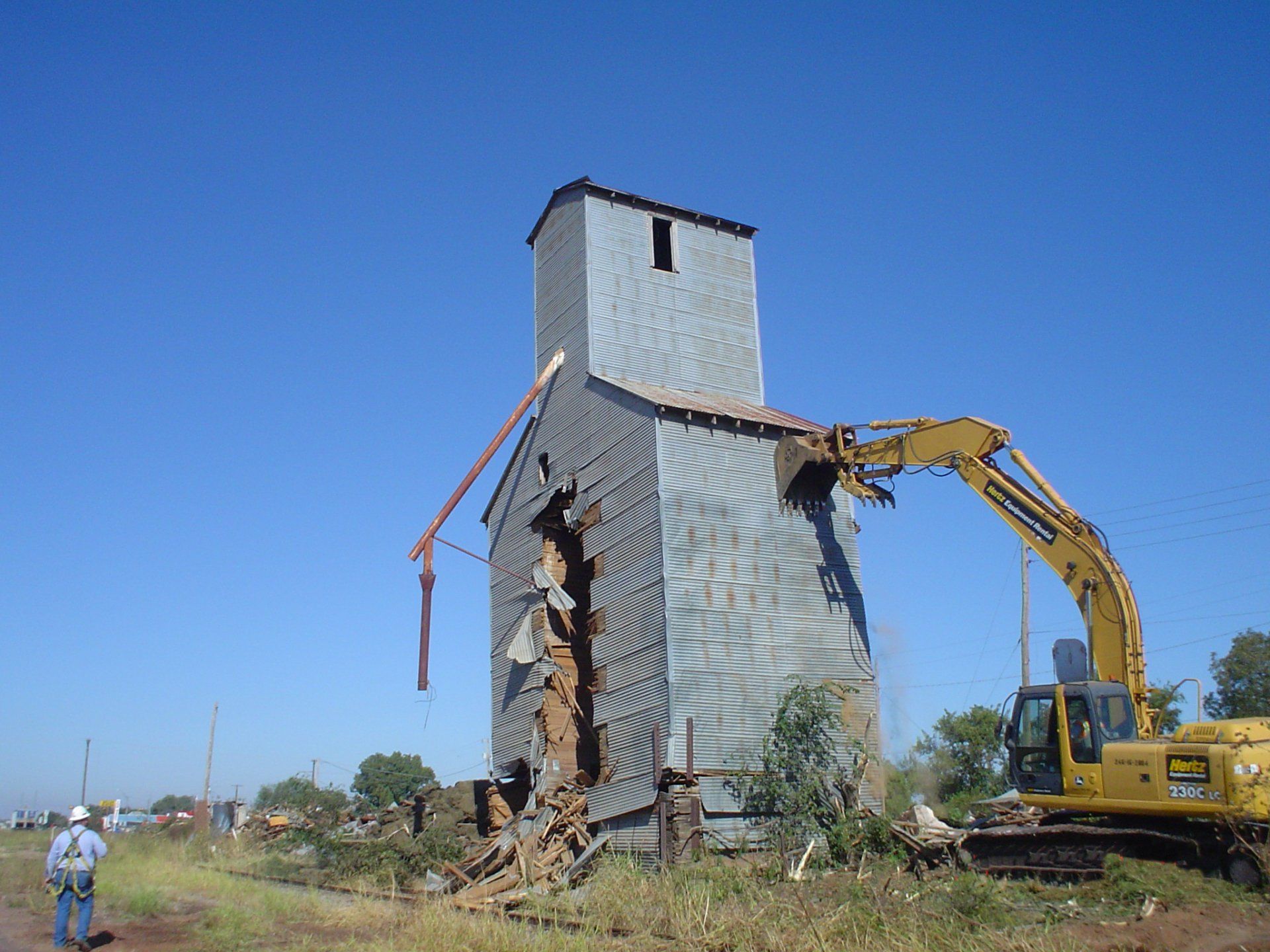 Our professionals can demolish an oil station, sand tower, grain silo, railroad bridge, signal tower or other structure, breaking down the building and recycling or moving the materials to the appropriate landfill. We also do asphalt demolition, utility pole removal as well as the removal, demolition and disposal of concrete parking blocks.